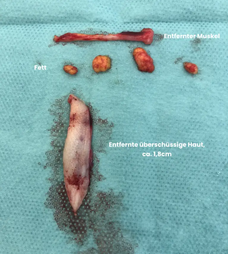 Lidstraffung: Darstellung entfernte Haut, Fettgewebe und Muskel